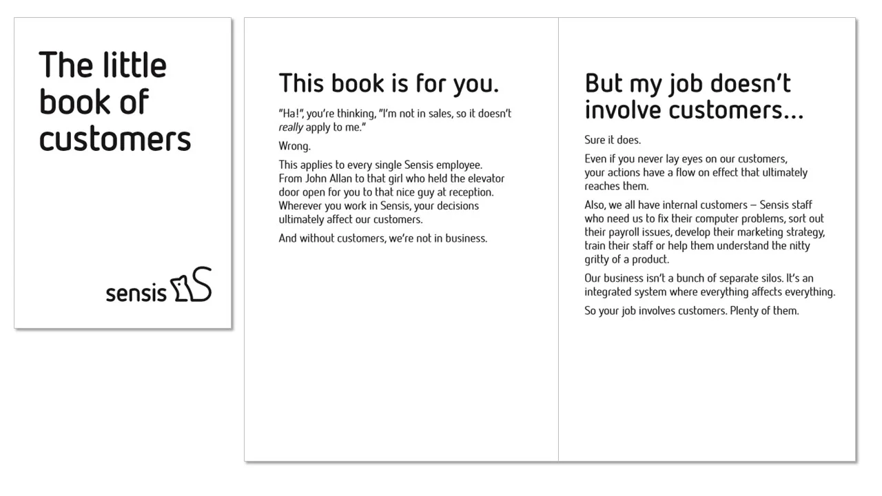 This internal staff booklet is still given to all new starters. It was designed to turn "it's not my job" thinking on its head and instil a sense of 'customer-first' in every Sensis employee.
